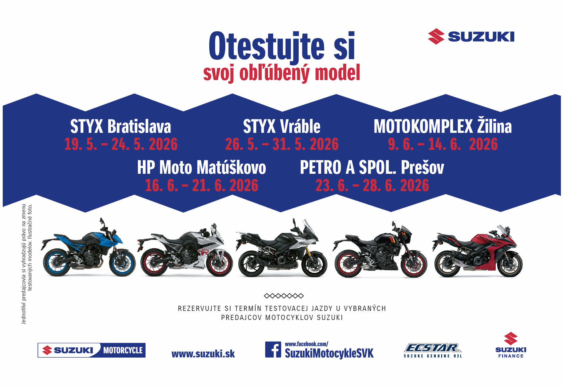 Príď si užiť jedinečnú jazdeckú atmosféru a otestovať najnovšie modely Suzuki na vlastnej koži!