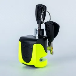 KOVIX zámok KS6-FG / fluo KOVIX - zámok na kotúč KS6 s alarmom oranžový - najmenší zámok s alarmom ! pevný obal z tvrdenej ušľachtilej ocele modul alarmu chránený zinkovou zliatinou priemer uzamykacieho valčeka 5,5 mm zabudovaný alarm o intenzite 120 dB vodotesné komponenty 3x kľúče v balení obsahuje lithiovú batériu životnosť až 10 mesiacov